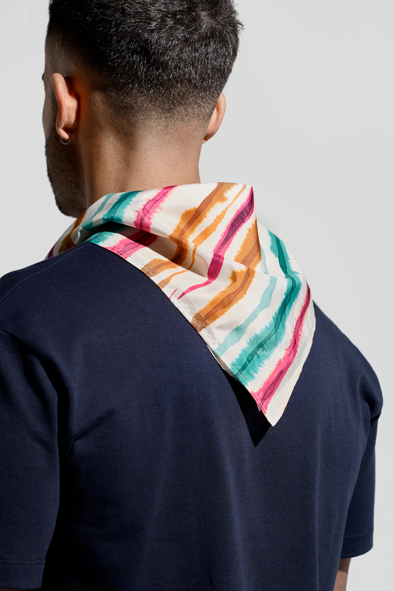 The KALEIS bandana gives a nice touch of flair to any outfit, wear it to protect from the midday sun on that boat trip to Delos. It's made with 100% recycled polyester by the Fundacion Roure in Barcelona.